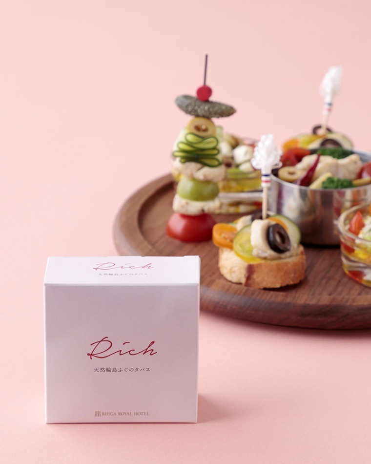 「RIHGA ROYAL RICH」シリーズ第三弾として、リーガロイヤルホテル オンラインショップ専任料理長の五嶋啓太がホテル伝統のレシピを用いて作った“天然輪島ふぐのタパス”をご用意。