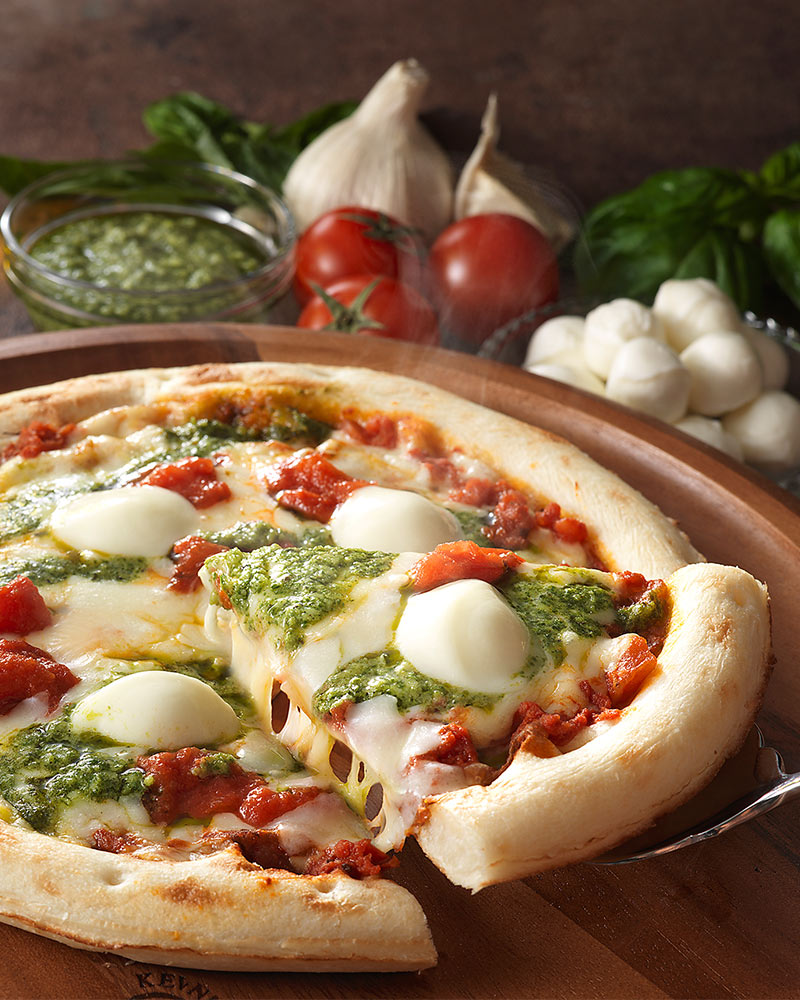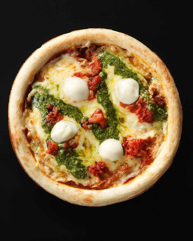ふんわりとしてもちもちとした食感の本格的な窯焼き風ピザ生地に、コクのあるマリナーラソース(トマトソース)、モッツァレラチーズ等のナチュラルチーズ、トマト、パジルペーストをトッピングしたピッツァです。