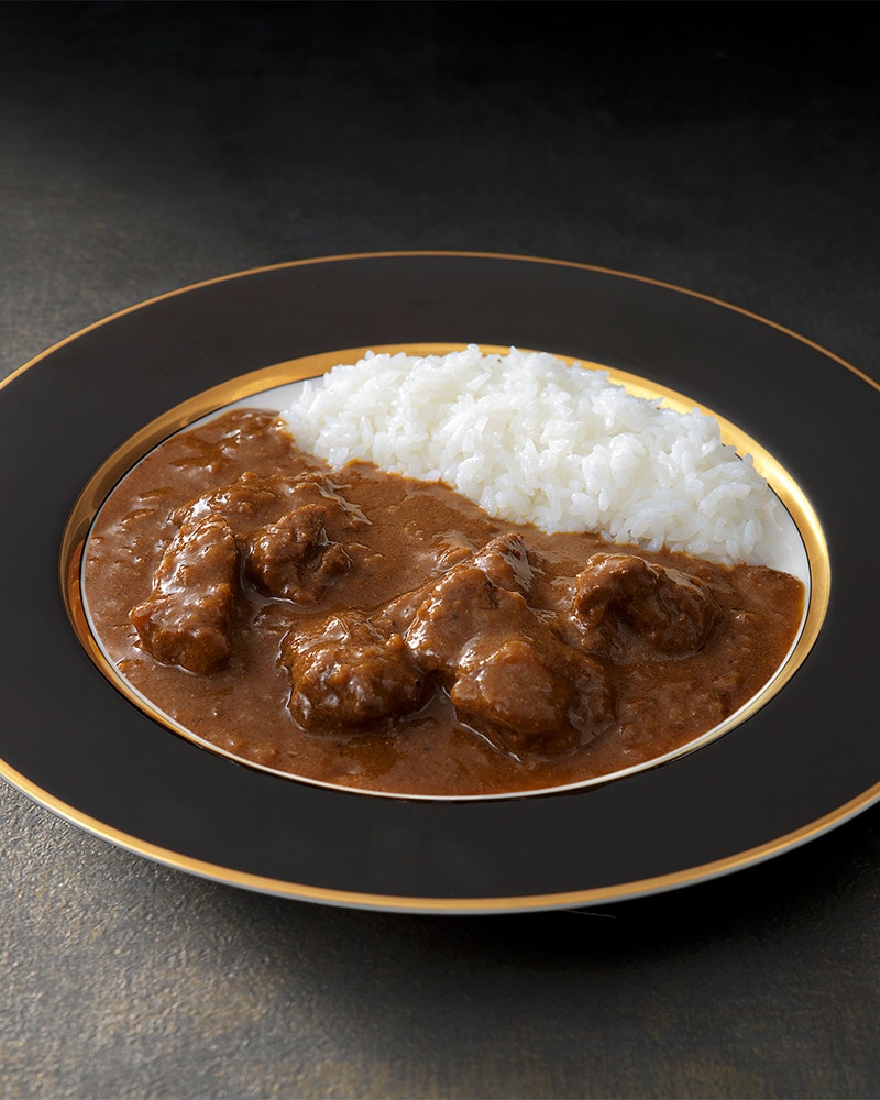 [原材料名]牛肉(国産)、ソテーオニオン、たまねぎ、りんごピューレ、トマト・ピューレーづけ、ミルポワペースト、なたね油、食用精製加工油脂、小麦粉、クミン、ビーフエキス、チキンエキス、砂糖、カレー粉、コリアンダー、食塩、たん白加水分解物、酵母エキス、ブラックペッパー、ガラムマサラ、和牛エキス、黒砂糖、赤唐辛子、オニオンパウダー、カスリメティ、チリパウダー、カルダモン、ガーリックパウダー、フェンネル、醤油パウダー、トマトパウダー、野菜エキスパウダー/着色料(カラメル)、酸味料、(一部に小麦・牛肉・豚肉・鶏肉・大豆・りんごを含む)
