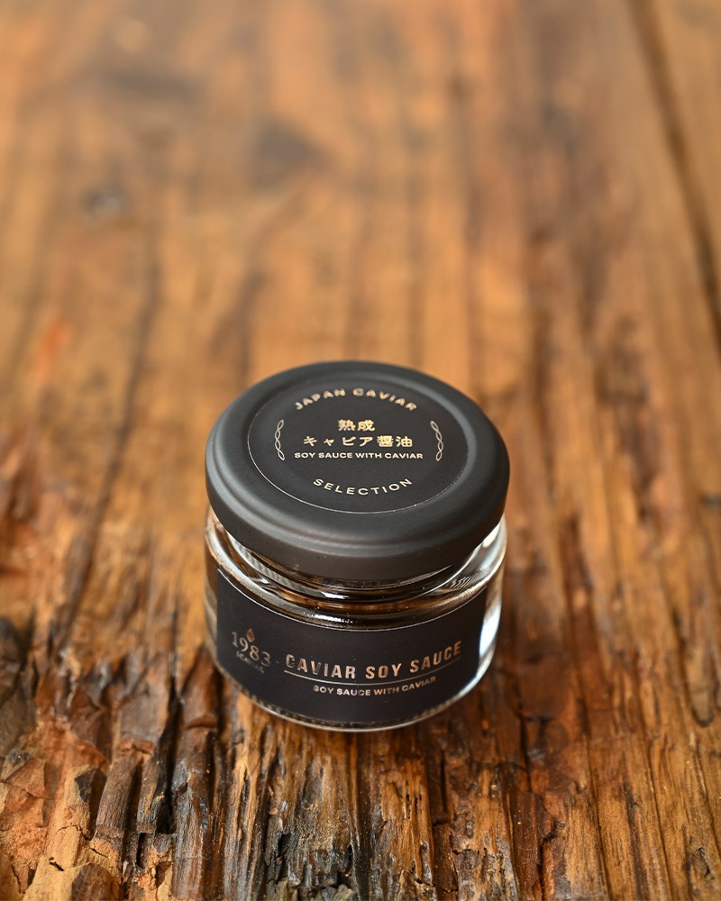 長期熟成によって旨味を極限まで引き出した「宮崎キャビア1983」と、厳選された国産・無添加の熟成醤油が織りなす、贅沢な味わい。ジャパンキャビア独自の技術により、3ヶ月以上の時間をかけて丁寧に熟成されたこの醤油は、芳醇な旨味が凝縮され、素材本来の味を一層引き立てます。 キャビアの粒がしっかりと残り、見た目にも華やかで、食卓を豪華に演出。特別なひとときを彩る、まさに“極上”の熟成キャビア醤油です。