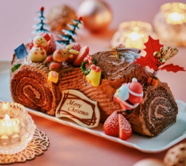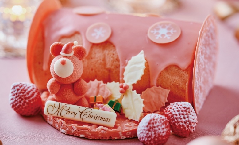 ふわふわのいちごシフォンに、くるっと巻かれた甘酸っぱいロールケーキ。クリスマスの特別なひとときにピンクのくまさんがそっと寄り添います。見た目も味も、心までとろけるようなスイーツで笑顔あふれるクリスマスを過ごせますように。